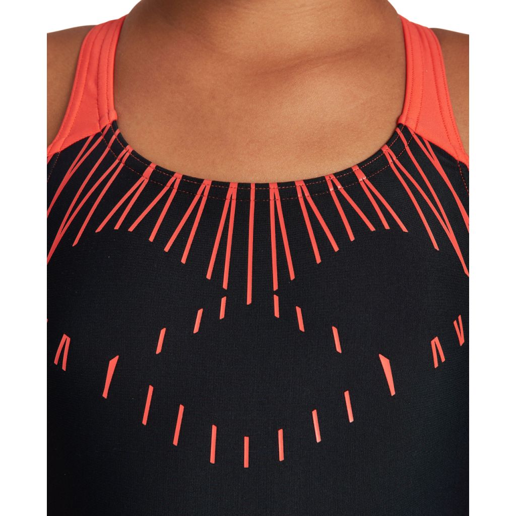 Το σικάτο κι άνετο, ολόσωμο μαγιό είναι ιδανική επιλογή για κορίτσια, που ασχολούνται με το κολύμπι και ψυχαγωγικές δραστηριότητες. Το ύφασμα έχει την τεχνολογία MaxFit κι έχει ενσωματωμένη αντηλιακή προστασία από την υπεριώδη ακτινοβολία UPF50+. Εξαιτίας του μεριδίου ελαστάνης το ύφασμα είναι ευκολοφόρετο, μαλακό και παρέχει εξαιρετική εφαρμογή. Διαθέτει φαρδιές τιράντες κι εργονομική πλάτη για καλύτερη εφαρμογή.
