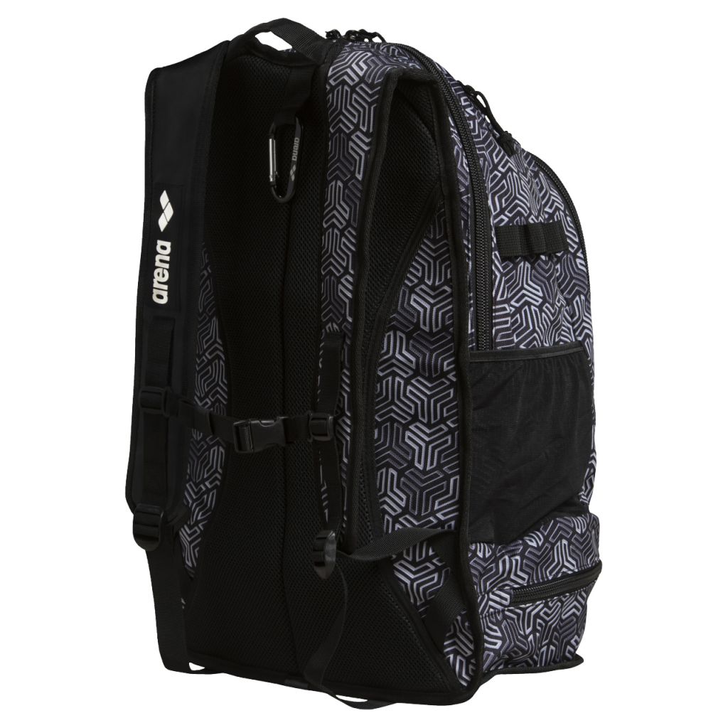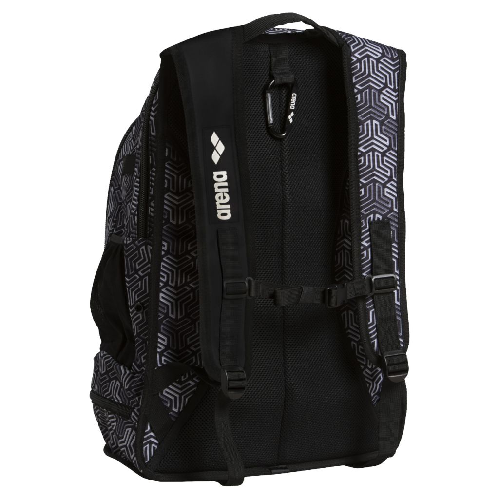 Το πρακτικό σακίδιο πλάτης της Arena Backpack Fastpack 2.2 Allover έχει σχεδιαστεί για τους λάτρεις των σπορ. Μία μεγάλη θήκη προσφέρει αρκετό χώρο ακόμη και για τον απαραίτητο εξοπλισμό προπόνησης. Στο κάτω μέρος υπάρχει ειδικός χώρος για βρεγμένα ρούχα και παπούτσια. Αυτό που το ξεχωρίζει είναι ότι μπορεί να λειτουργήσει ως γκαρνταρόμπα αφού μπορεί να κρεμαστεί οπουδήποτε από τον μεγάλο ενισχυμένο γάντζο carabiner. Η πλάτη καθώς και τα λουριά μεταφοράς με την ειδική μαλακή επένδυση εξασφαλίζουν άνεση στη μεταφορά ακόμη και αν το καλύψει το σύνολο της χωρητικότητας του. Η ενίσχυση του πάτου προστατεύει το περιεχόμενο του σακιδίου από βρεγμένα σημεία που μπορεί να έχουμε αφήσει το σακίδιο μας.
