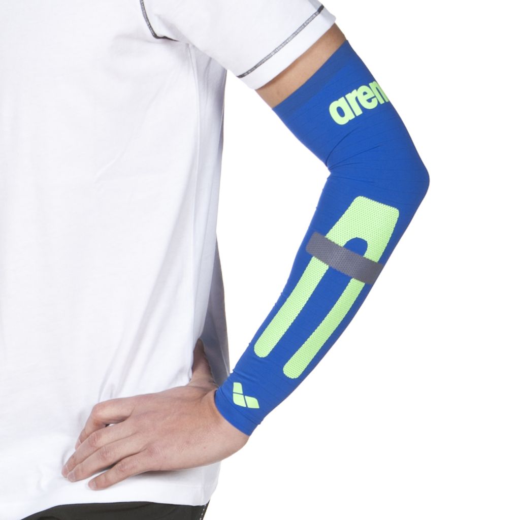Τα μανίκια συμπίεσης είναι κατασκευασμένα από ύφασμα, υψηλής τεχνολογίας, ανθρακονήματα για βελτιωμένη κυκλοφορία του αίματος και ταχύτερη αποκατάσταση των μυών από τραυματισμούς. Η σχεδίαση με σιλικόνη ασκεί πίεση στους μύες του αντιβραχίου, για να αποτρέψει τον πόνο μετά το κολύμπι. Το εσωτερικό τους έχει συγκεκριμένο είδος ραφής έτσι ώστε η ταινία από σιλικόνη να τα κρατά σταθερά στη θέση τους.